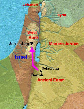 Edom ' ''Edom = 'red'; the land that Esau settled in, in southern Jordan.