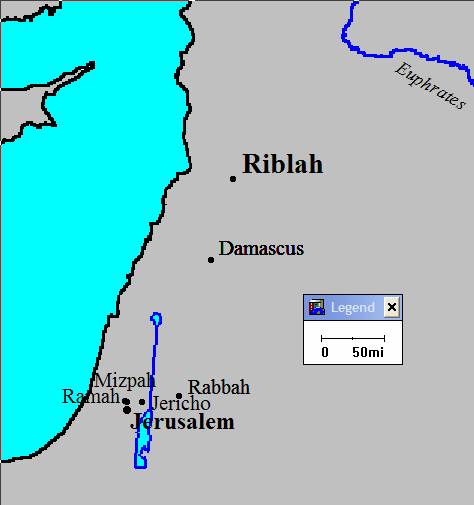 Riblah ' 'fertility'; almost 200 miles north of Jerusalem, 60 miles