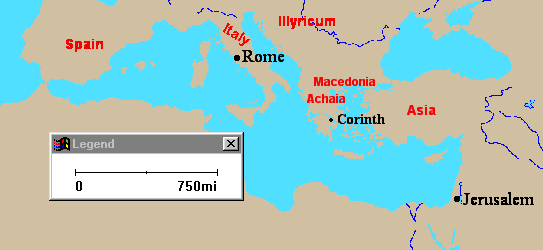 map. Paul was writing from Corinth. He was planning on first going to Jerusalem (Rom. 15:25), but then to come back to Spain.Paul's goal was to go to Spain, but on the way he would stop at Rome.